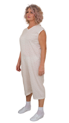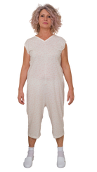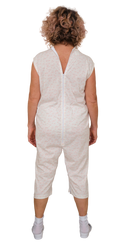 Dotado de cremallera trasera y dos cremalleras separadas e independientes en el interior de las piernas, que no sólo facilitan la tarea de los operarios a la hora de cambiar las ayudas, sino que también permiten llevar cómodamente la prenda a quienes habitualmente utilizan sondas. Versión sin mangas.