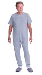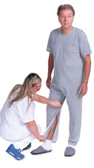 Equipado con una cremallera en la espalda y dos cremalleras en el interior de las piernas que abren completamente el pantalón para facilitar el cambio nocturno de los auxiliares. Versión de manga corta.