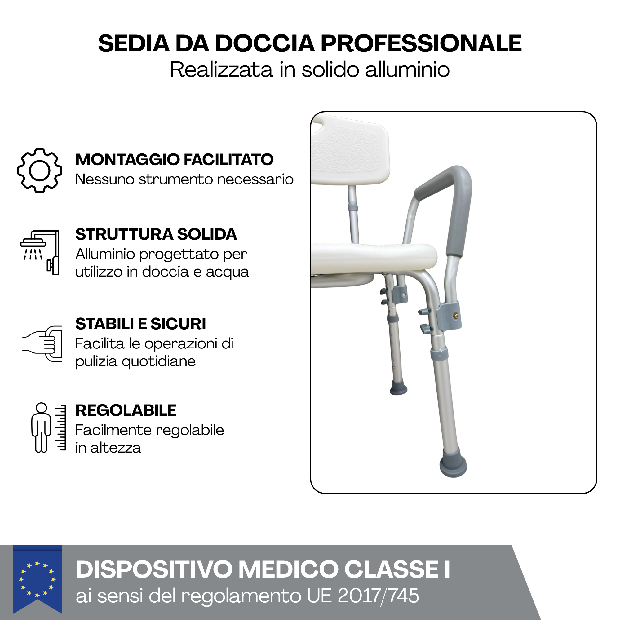 - 3 en 1 Personalizable: Gracias a sus apoyabrazos y respaldo extraíbles, puedes configurar la silla según tus necesidades o el espacio disponible en tu plato de ducha.