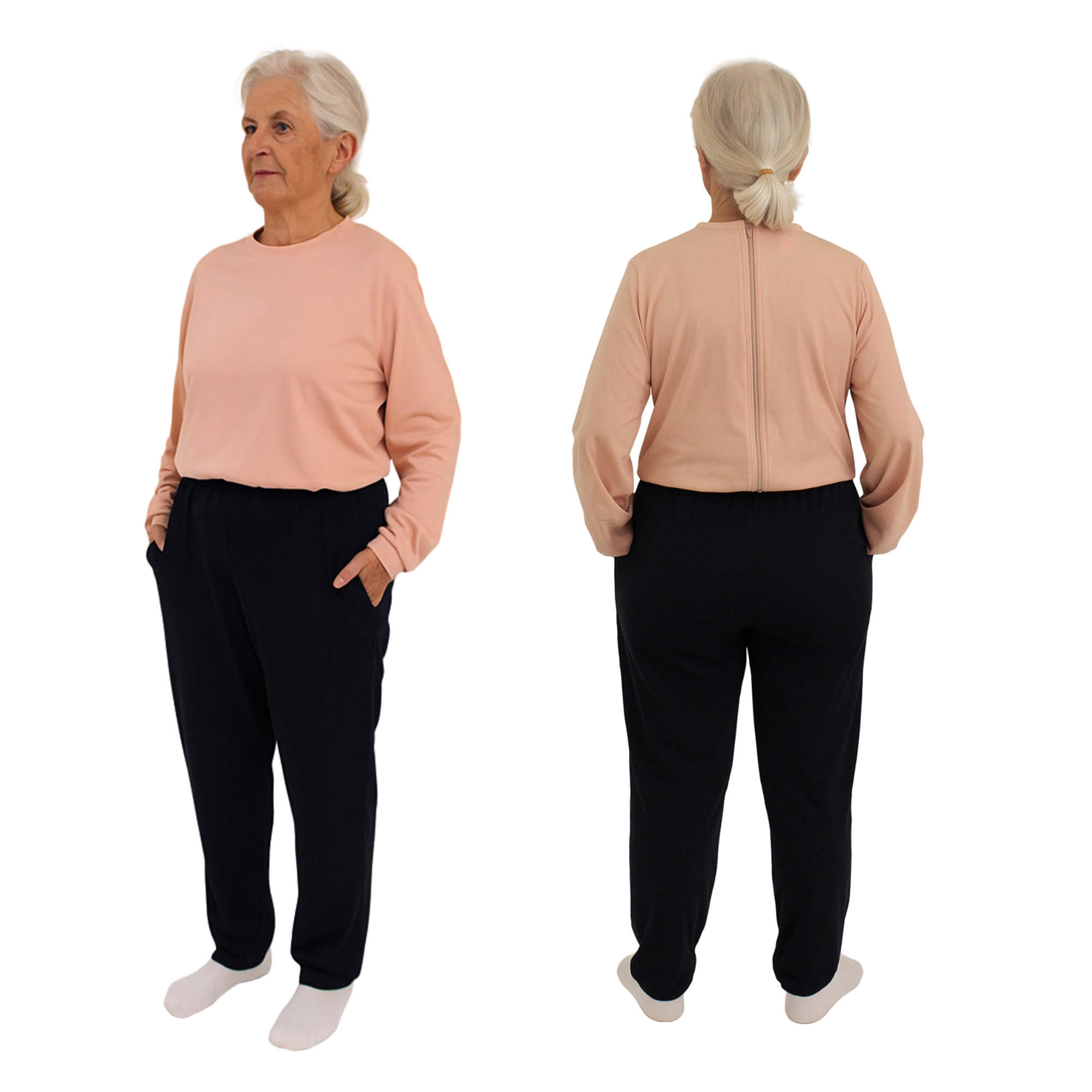Es la solución perfecta para mantener la dignidad del paciente con Alzheimer, demencia senil o conductas de desvestido, permitiéndole lucir una prenda con apariencia de ropa de calle.