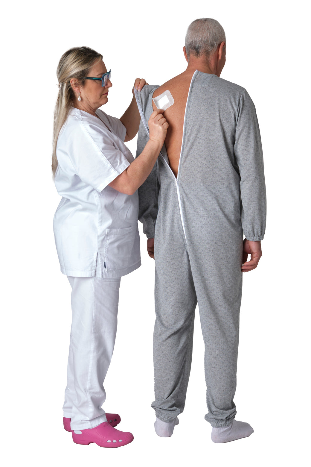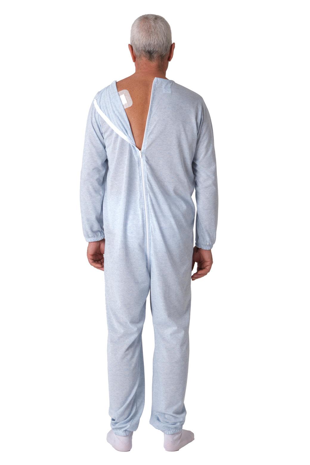 Pijama Sanitario con Protección Avanzada: Este modelo ha sido desarrollado específicamente para el cuidado de personas con incontinencia, demencia senil, Alzheimer o discapacidades psíquicas que presentan conductas de desvestido.